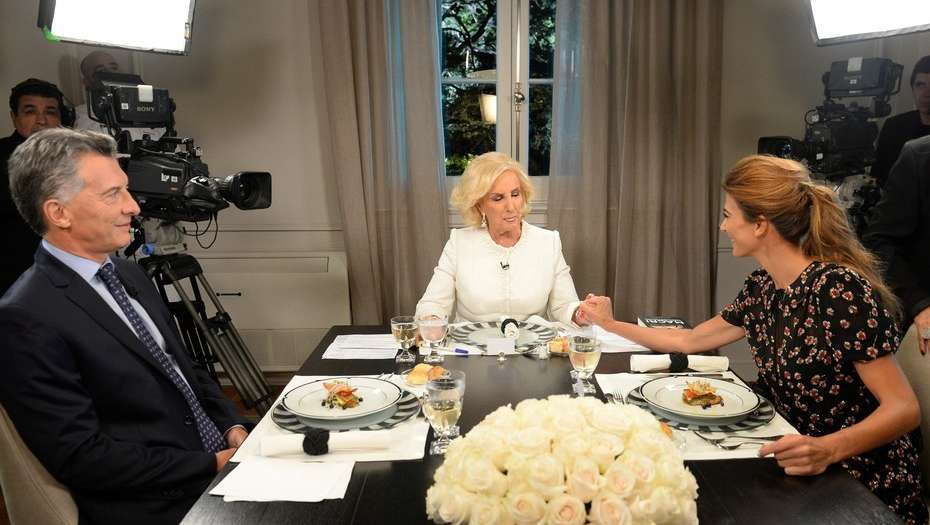 El presidente Mauricio Macri y la primera dama Juliana Awadarecibieron esta noche a la conductora Mirtha Legrand para la transmisión televisiva de su cena de los sábados. Fue una conversación en la que el jefe de Estado recibió críticas y elogios, habló del conflicto docente y la pobreza, y afirmó que no habrá cambios en su Gabinete.