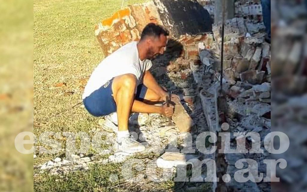 En los últimos días, Juventud fue afectado severamente por el temporal que azotó nuestra ciudad y en la fotografía que compartimos a continuación se lo puede observar a Matías martillo en mano, ayudando como un jugador e hincha más en la reconstrucción del tapial de calle Colón.