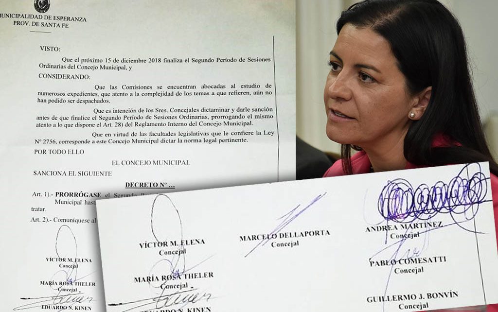 También se observa que firmó la edil Martínez quien, luego arrepentida, borroneó su propia letra de manera ostensible. Ya en esta situación (¿?) su compañero de bloque, Bonvín, no firmó.