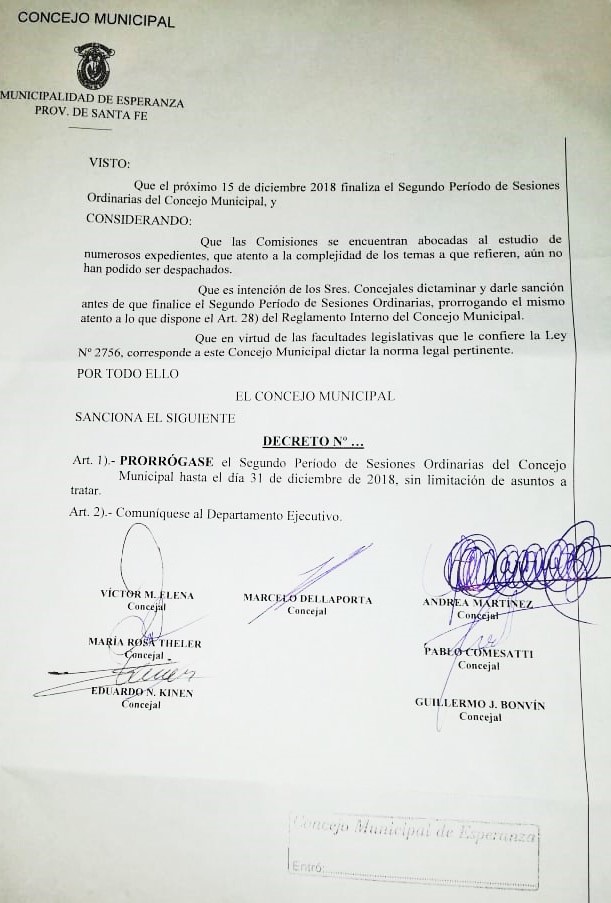 El responsable de prensa de la Municipalidad de Esperanza, Mario Dos Santos, envió un comunicado al mediodía del jueves informando sobre la aprobación de este proyecto. Sin embargo, a las pocas horas llegó un nuevo texto aclarando la extraña situación, lo compartimos: