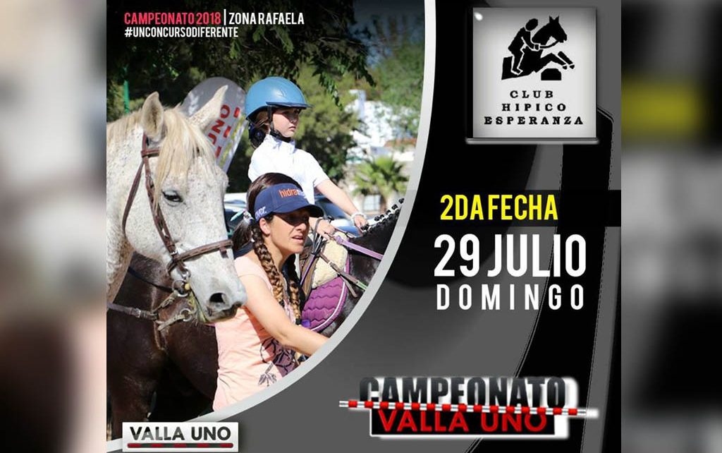 El Club Hípico Esperanza desarrollará este domingo la segunda fecha del campeonato de equitación Valla Uno 2018, cabe destacar que el torneo ecuestre es organizado por esa reconocida revista.