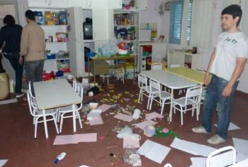 Tiraron por el piso los libros de los chicos y cuadernos de las docentes, carpetas, todo lo que encontraron a su paso los tiraron o destruyeron con una saña verdaderamente tan inentendible como desagradable.
