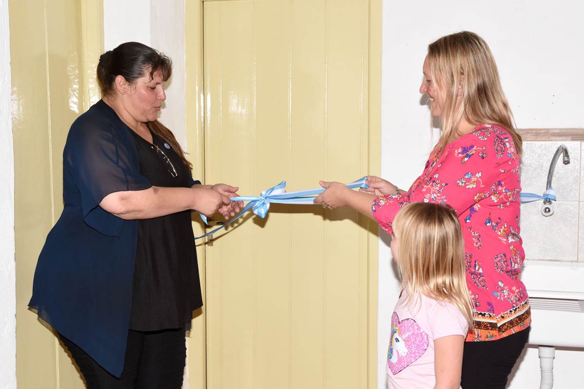 Se recuperó un ambiente en donde se instaló una cocina de cero. Se colocó piso de cerámica y revestimiento de cerámica en todas las paredes, además del cielorraso nuevo. Se instaló un termotanque, una bajomesada revestida en cerámica y alacena nueva con cuatro puertas. Se colocaron dos puertas nuevas y se arreglaron y pintaron las demás. En este ambiente se realizó instalación eléctrica nueva y plomería completa.