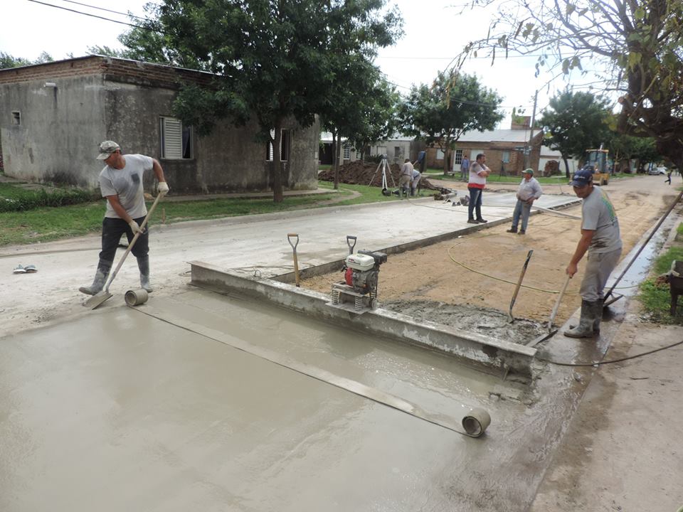 Personal de obras de la Comuna, continúa con la extensión de la red de pavimento urbano sobre calle I. Malvinas del Barrio Federal, en esta ocasión, hasta su segunda intersección con calle A. Hosch.