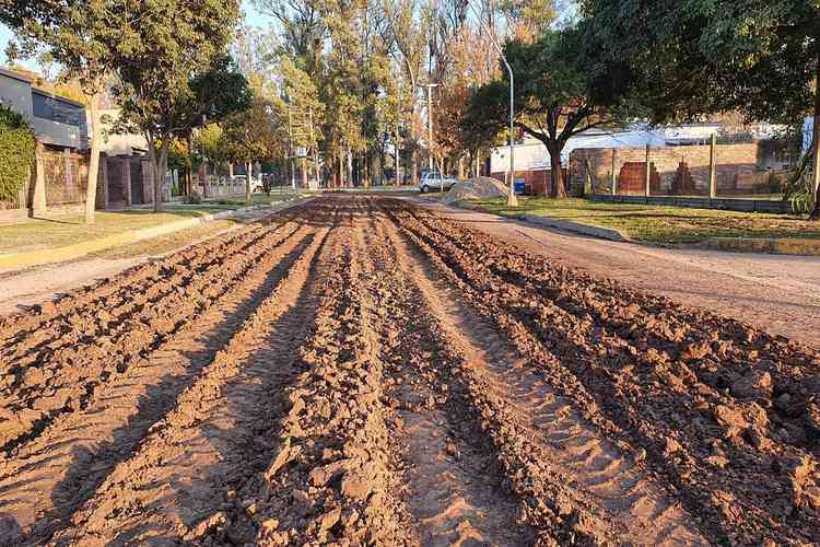 Los trabajos comprendieron el alteo y la recomposición de material pétreo en un sector de calle Italia. A partir del lunes las obras se trasladan a calle Francia donde se recuperarán unos 300 metros.
