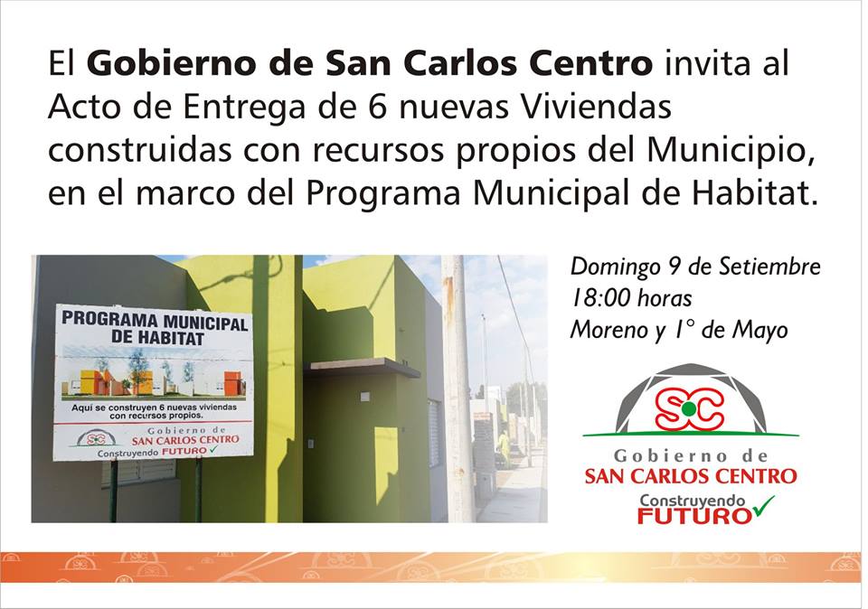 “Es por ello que invitamos a la comunidad al acto durante el cual se formalizara la entrega a sus adjudicatarios. El mismo se llevará a cabo este domingo 9 de setiembre a las 18:00 horas. en Moreno y 1º de Mayo”.