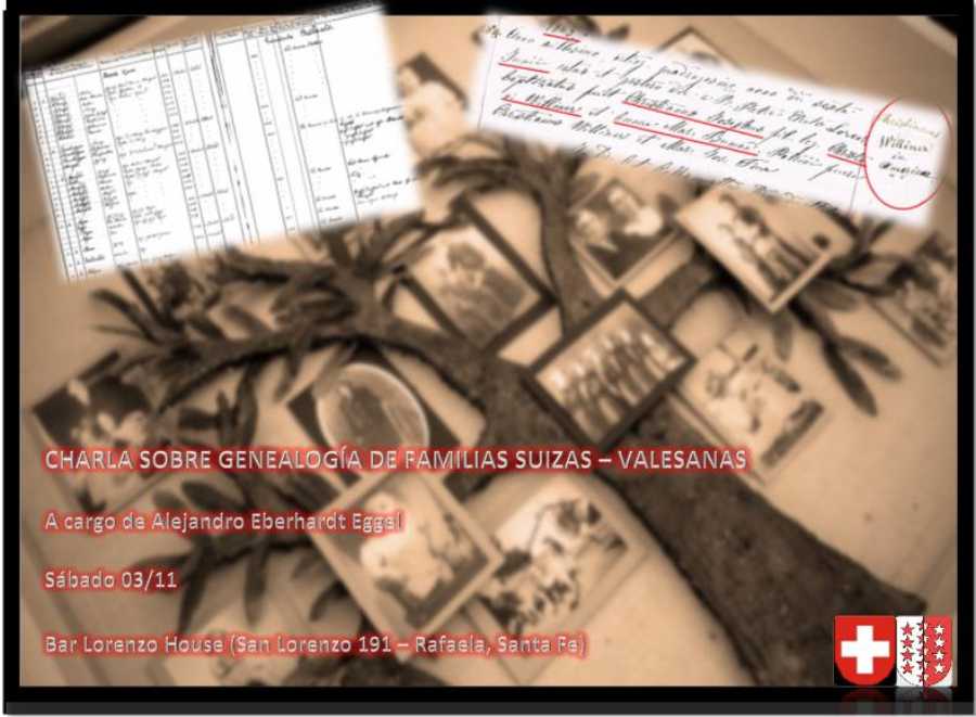 Se realizará una charla sobre genealogía de familias Suizas-Valesanas el próximo sábado 3 de noviembre a la hora 17:30.
