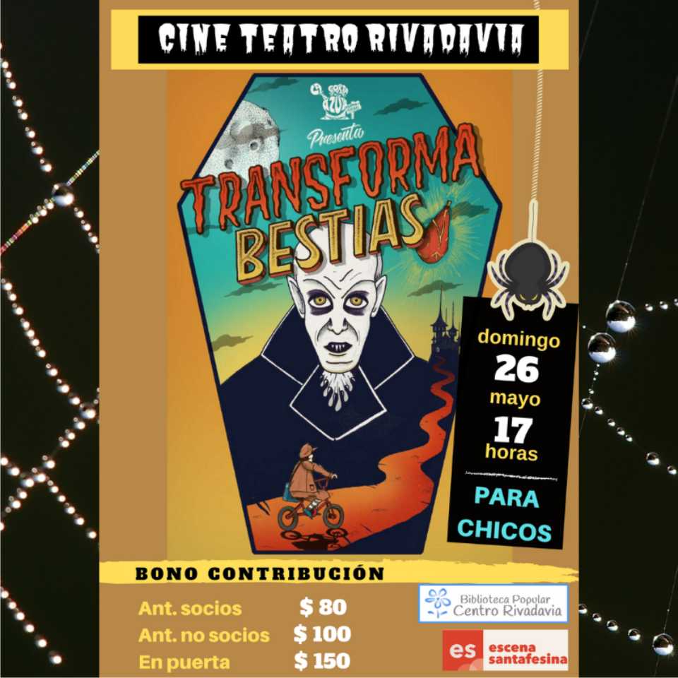 Se presentará la obra de teatro para toda la familia “TransformaBestias” el domingo 26 de mayo a las 17:00 horas en el Cine Teatro Rivadavia de San Carlos Centro.