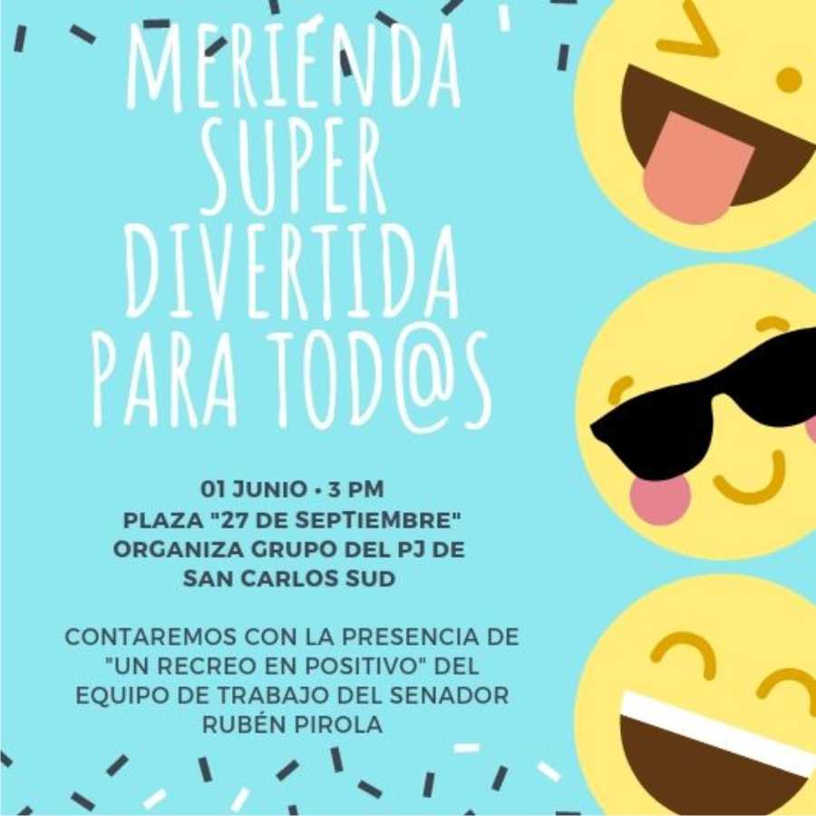 Para el día de mañana contamos con la colaboración del equipo de trabajo del senador Rubén Pirola, y estaremos en la plaza “27 de septiembre” con los peloteros y juegos de “Un recreo en positivo”, además habrá música, chocolatada caliente, tortas y golosinas, para todas y todos.