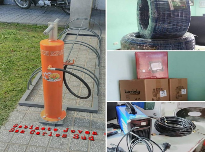 Por su parte el Gabinete Joven adquirió un inflador urbano colocado en el frente de la Sede Comunal, y que puede ser utilizado por quien lo necesite.
