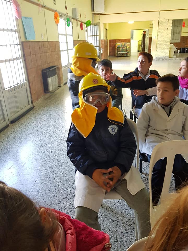 Por otra parte, también estuvieron presentes en la escuela Manuel Belgrano de San Carlos Sud donde se les brindó una charla a los alumnos de 4 grado y se mostraron elementos y equipos utilizados en incendios forestales.