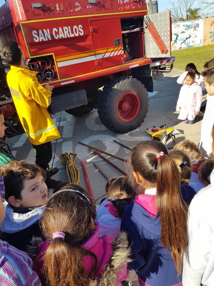 El cuartel de bomberos de San Carlos recibió durante la semana la visita de alumnos del Jardín de Infantes 85 ambos turnos quienes conocieron los elementos que utilizan bomberos para las emergencias.