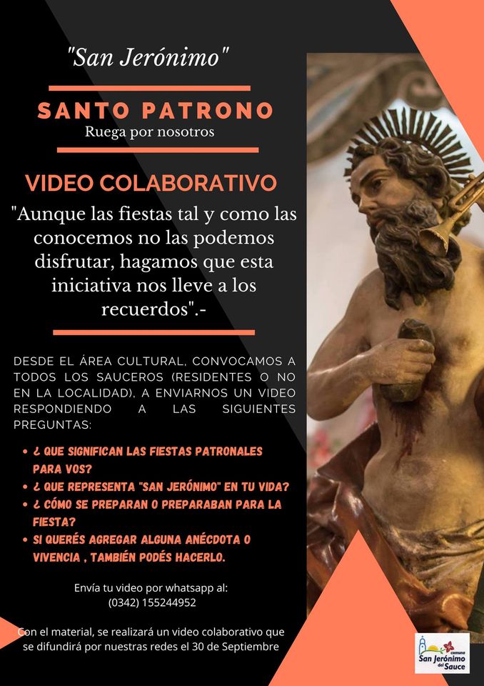 Desde el área cultural, convocamos a todos los sauceros (residentes o no en la localidad), a enviarnos un video respondiendo a las siguientes preguntas: