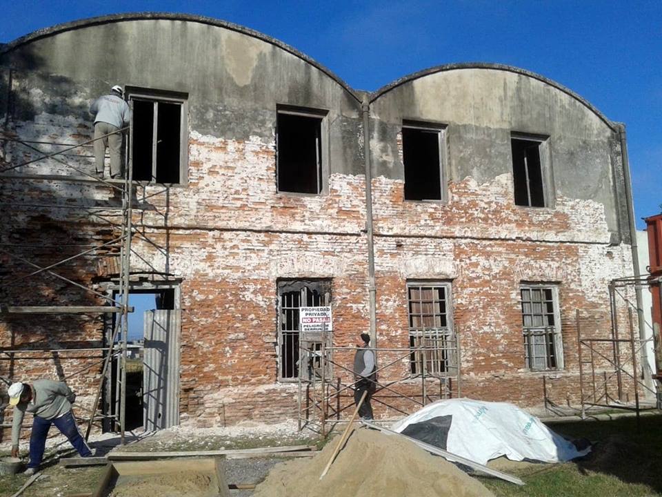 Continúan los trabajos en el Centro Cultural “La Curtiembre”. Se está realizando un apuntalamiento de la estructura edilicia y mejoras en revoques del edificio.