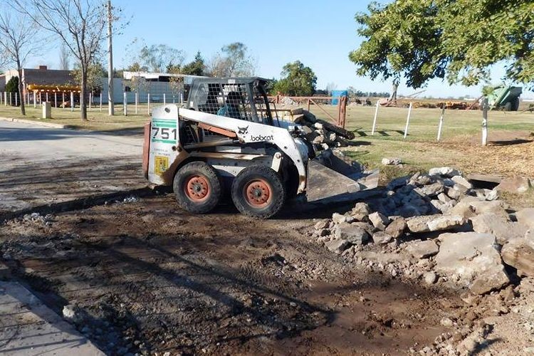 Personal comunal lleva adelante obras de bacheo y remplazo de losas de hormigón en diferentes puntos de la localidad. En la zona de mayor tránsito de camiones y maquinaria pesada, las losas son levantadas y reemplazadas por nuevas.