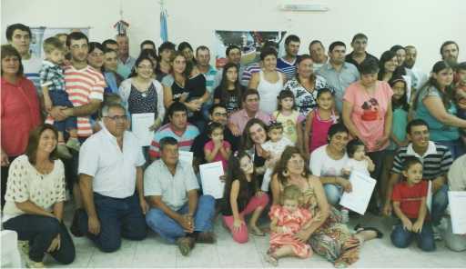 En un acto con gran emotividad que fue presidido por el Presidente de la Comuna de Sarmiento Horacio Rubiolo, acompañado por el Senador por el departamento Las Colonias Rubén Pirola, miembros de la comisión comunal y vecinos, la Comuna local hizo entrega a 22 familias de las escrituras traslativas de dominio que los acreditan como poseedores de sus terrenos en la ampliación que se ejecuta del ejido urbano en dos hectáreas y media desarrollado con recursos propios comunales lo que permitió la adquisición de dichos lotes a precios accesibles para cada familia.