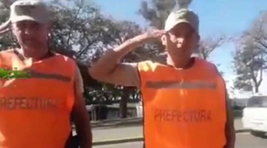 Según se puede ver, dos agentes de la Prefectura Nacional se disponen a hacer un control vehicular, como es la rutina, pero cuando se dieron cuenta, tras solicitarle la documentación correspondiente, de que se trataba de un excombatiente de Malvinas no dudaron en tener un gesto de reconocimiento y gratitud.