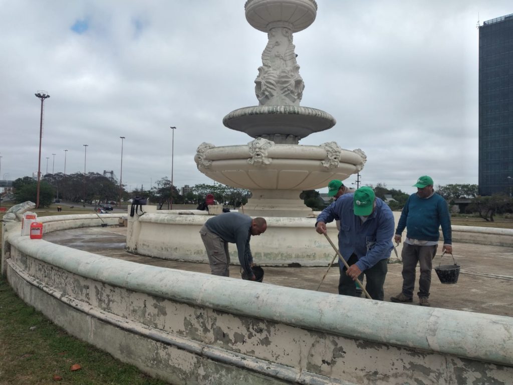 Las tareas de la Municipalidad incluyen la instalación de un nuevo sistema eléctrico de alimentación, la reparación íntegra de la bomba, los tableros eléctricos, la restauración de los elementos ornamentales, la limpieza profunda y el sellado de grieta del fondo. También se rescató la escultura de hierro que va en la parte superior, que se colocó con la ayuda de los Bomberos.