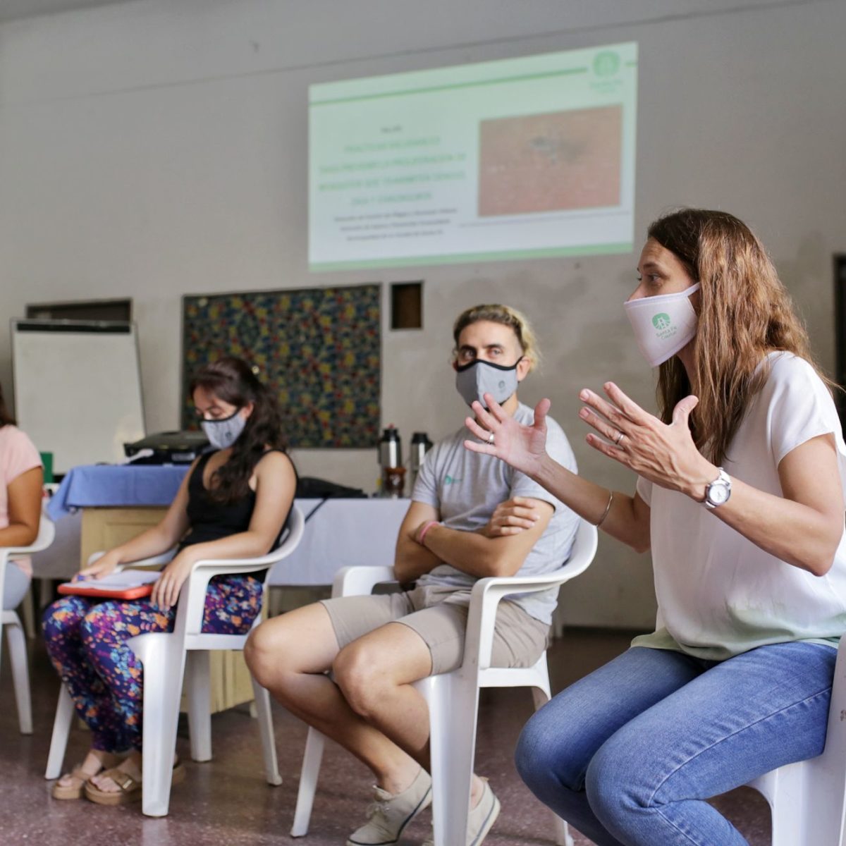 La secretaria de Políticas de Cuidado y Acción Social, María Victoria Rey, explicó que esta actividad se enmarca en el ciclo de capacitaciones y trabajo articulado entre la Municipalidad y Los Sin Techo. La intención es “brindarles herramientas para trabajar en la prevención del dengue, de modo que puedan realizar tareas de promoción de la salud en sus barrios, pero también, sumarse a las estrategias implementadas por el municipio”, describió.