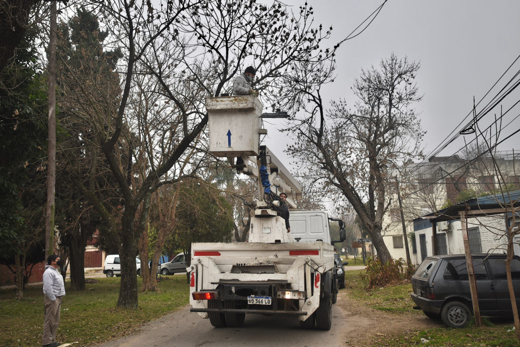 Las tareas incluyen, además de la colocación de nuevos reflectores, trabajos de poda y despeje sobre la vegetación existente para que haya mejor apertura lumínica en cada bloque de viviendas.