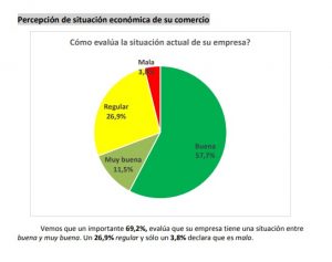 Por su parte, cuando los comerciantes fueron consultados por la percepción de la situación económica de su negocio «vemos que un importante 69,2%, evalúa que su empresa tiene una situación entre buena y muy buena. Un 26,9% regular y sólo un 3,8% declara que es mala», destacaron desde el Centro Comercial.