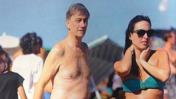 La revista Gente lo encontró con su novia María Soledad Delgado, 35 años menor que él, tomando sol en la playa, sin remera.