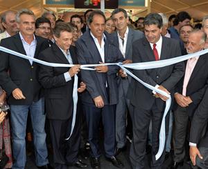 El diluvio que desde temprano se anunciaba aquí llegó una hora antes de la cita y obligó a montar una carpa y un auditorio para el acto. Pero amainó justo a tiempo, pocos minutos antes de que llegaran los ministros, todos juntos en una combi. Estaban listos para el corte de cinta y ubicados para la foto (Capitanich, Giorgi y los presidenciables Randazzo y Domínguez en primera fila). Sólo faltaba Scioli, que llegó 15 minutos más tarde y se acomodó a un costado. El retraso y la brevedad de la ceremonia disimularon la frialdad de los saludos.
