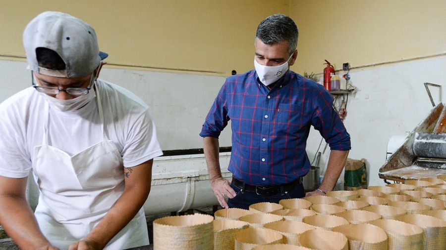 Zabaleta recorrió este martes las instalaciones de la panadería Panificadora del Sur, en Wilde, uno de los puntos donde se produce y vende el producto navideño financiado por el Ministerio de Desarrollo Social a través de un acuerdo con el Centro de Panaderos 27 de Abril.