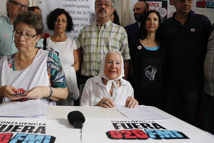 A su turno, Nora Cortiñas aseguró que «el gobierno tiene pánico porque este espacio no tiene miedo». Y agregó: «Nadie nos puede quitar el derecho a reclamar». En ese marco, la fundadora de Madres de Plaza de Mayo enfatizó: «Tenemos que salir a protestar, que salir a la calle a manifestar el rechazo al G-20 y al FMI que vienen a decirnos cómo tenemos que gobernar».