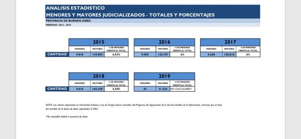 De igual manera, en la Provincia de Buenos Aires son muchos los chicos que permanecen imputados por diferentes delitos. En el 2015 había 9818 menores con problemas judiciales, y en el 2016 la cifra bajó a 9095. Sin embargo, en el 2017 se registraron 9638 chicos con problemas en la Justicia, aunque el 2018 cerró con un número un poco menor: 9610 menores de edad estuvieron judicializados.