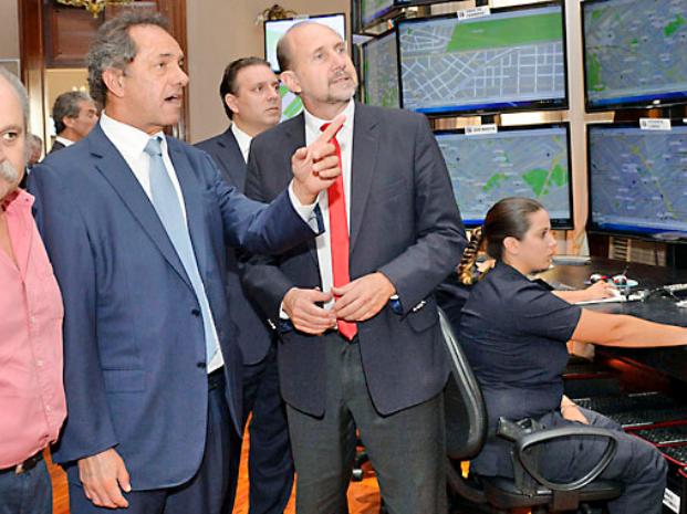 Scioli, Perotti y Granados recorrieron las instalaciones del Centro de Monitoreo de la Policía Local, que funciona en el propio Ministerio, y allí, el gobernador y su ministro explicaron el reclutamiento policial de esta fuerza de seguridad, que estará integrada por 15 mil efectivos que funcionará plenamente a mediados de año y que además se complementan con los 500 móviles nuevos, más de 1.800 patrulleros renovados y patrullas rurales.