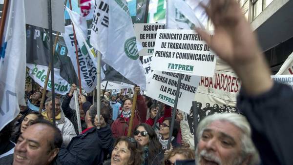 Bajo la consigna «Unidad y lucha contra los despidos y la precarización laboral» una multitud de periodistas y trabajadores de prensa recorrieron esta tarde el centro porteño para rechazar por el creciente cierre de empresas y por la mejora en las condiciones de trabajo en el sector, en una movilización considerada «histórica» por la Mesa Nacional de Trabajadores de Prensa, espacio convocante de la marcha.