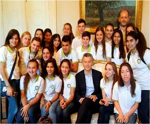 Esto dio lugar a una invitación para que los estudiantes visitaran la Casa Rosada. Y ayer en medio del paseo por la sede gubernamental pudieron transformar ese sueño en realidad gracias a que el Presidente aprovechó un espacio disponible en su agenda de actividades y se acercó a saludarlos y a charlar con ellos.
