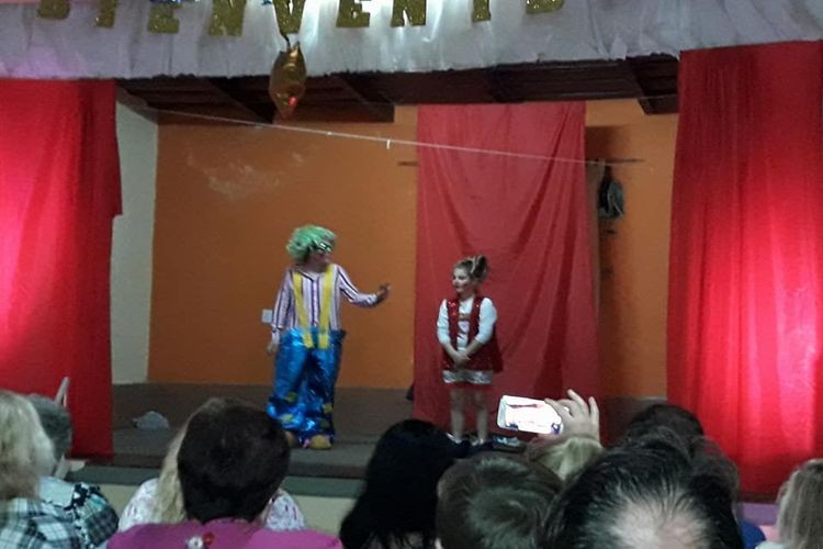 El salón del histórico bar central estuvo colmado de espectadores y familias de la localidad quienes disfrutaron la obra de teatro “El Caballo Valiente”, a cargo del profesor Mariano Marty.