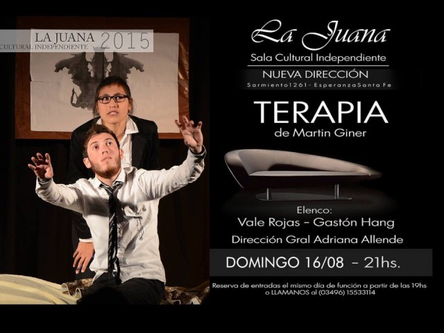 Continuando con el ciclo de estrenos de obras de teatro independiente en la Sala Cultural La Juana, mañana domingo se presenta la obra “Terapia” de Martín Giner.