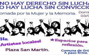 Por conmemorarse en marzo el Día Internacional de la Mujer y también el Día Nacional de la Memoria por la Verdad y la Justicia, la Comuna local se encuentra abocada en la organización, bajo el lema “NO HAY DERECHO SIN LUCHA, NO HAY LUCHA SIN CONVICCIÓN”, de una jornada por la Mujer y la Memoria.