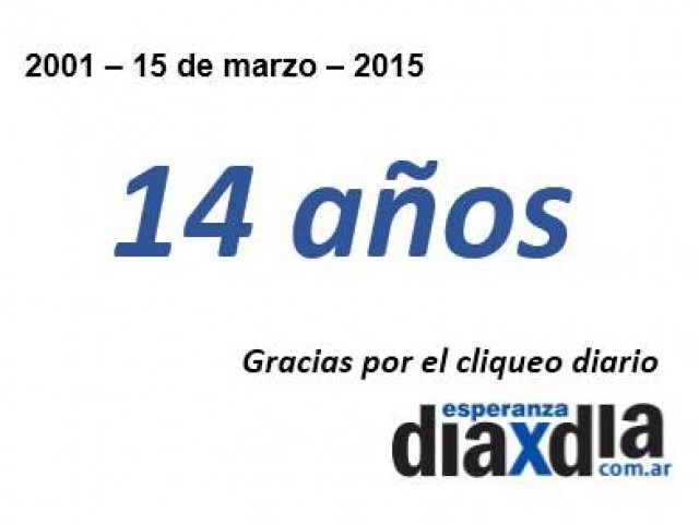 Un 15 de marzo de 2001 en el Salón del Centro Industria Comercio y Afincados de Esperanza fue presentado oficialmente el sitio de noticias “Esperanza Día X Día” que hoy, 15 de marzo del 2014 celebra sus primeros 14 años de vida.
