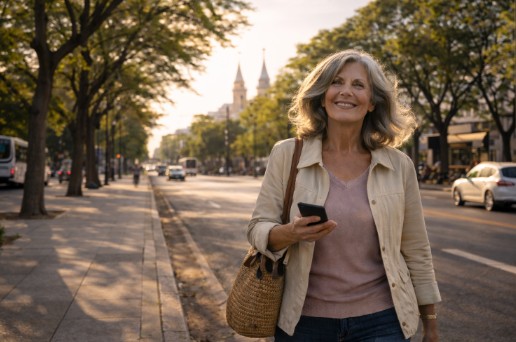 Una mujer camina sola. No corre. No mira vidrieras con ansiedad. Avanza con un ritmo firme, celular en mano, resolviendo trámites, compras y mensajes. No es una postal excepcional: es la escena cotidiana de una ciudad que envejece mientras sigue funcionando.