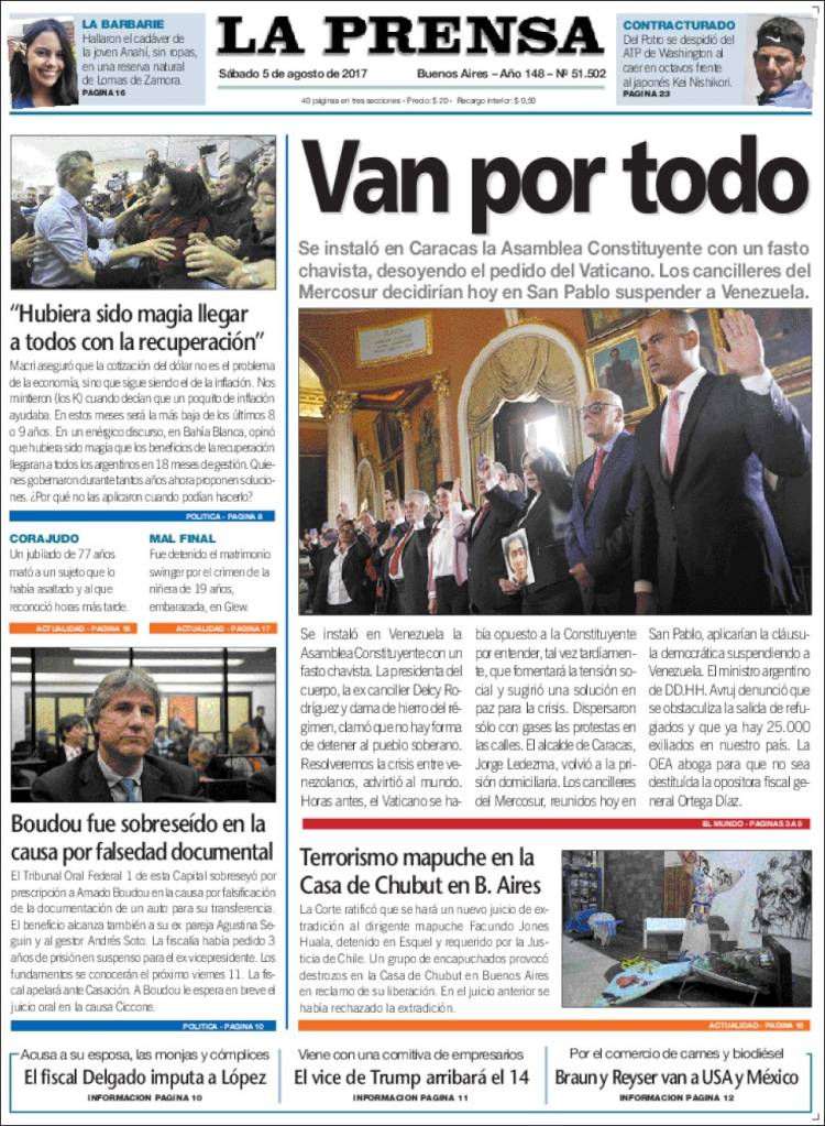 Como cada día te acercamos las tapas de los diarios más relevantes de la región y el país para que puedas arrancar el día con una mirada profunda y completa de lo que publica la prensa escrita.