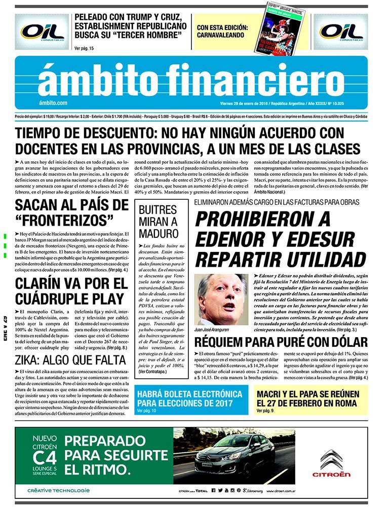 Como cada día te acercamos las tapas de los diarios más relevantes de la región y el país para que puedas arrancar el día con una mirada profunda y completa de lo que publica la prensa escrita.