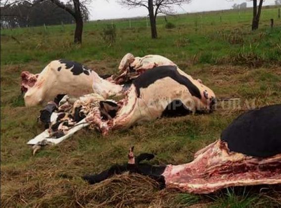 Llegan por fin los Pumas, les indico cómo fue el hecho y se dirigen hacia el sitio por donde pasaron con los animales, siguen los rastros y en el basural de Santo Tomé encuentran los mondongos.