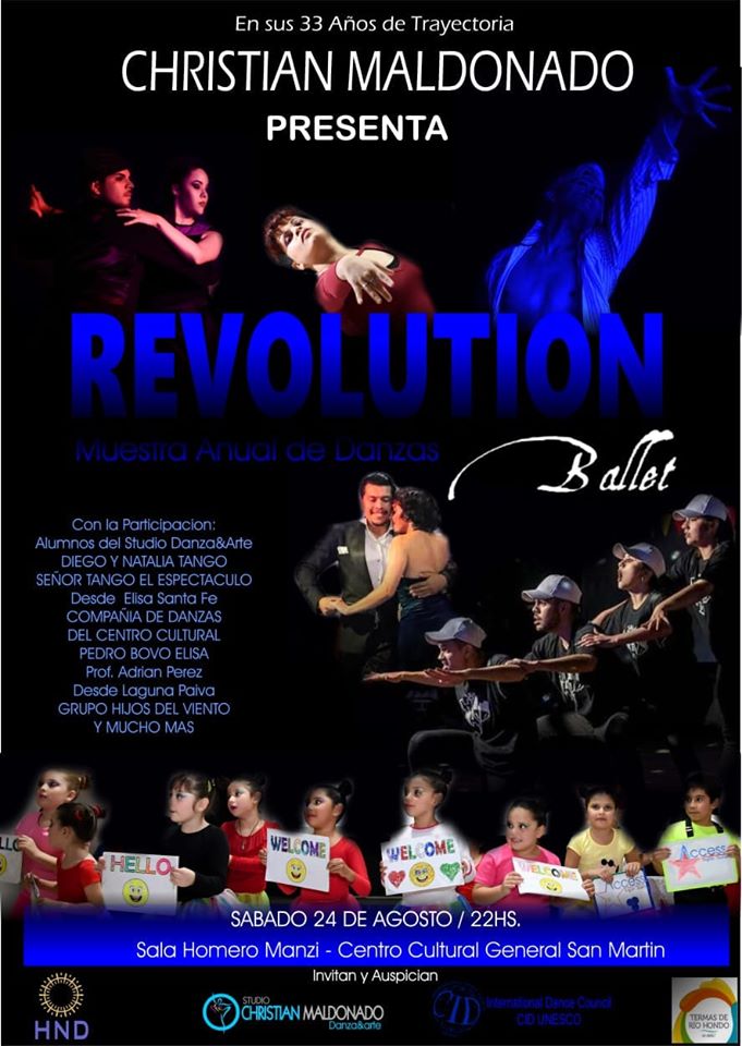 Hoy sábado, los chicos del Taller de Danzas Folclóricas del Centro Cultural Pedro Bovó de Elisa, están presentes en Las Termas de Río Hondo, representando al Centro Cultural de la localidad, participando en el show “Revolution”, Muestra Anual de Danzas, de Christian Maldonado, en sus 33 años de trayectoria en el baile.