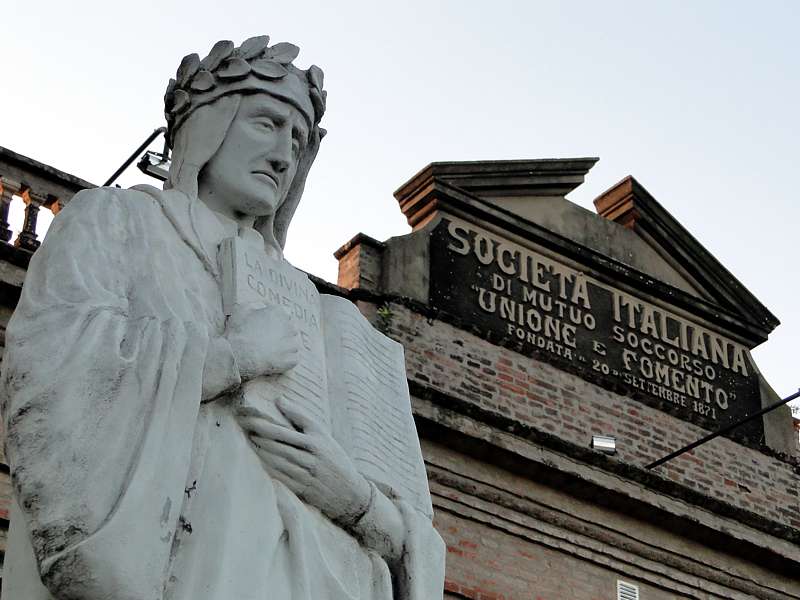 En el camino histórico de la lengua italiana, surge la imagen del gran florentino Dante Alighieri, quien con su magna obra La Divina Comedia nos va narrando –poéticamente- el peregrinar de la humanidad. Y así, a través de bellísimos tercetos entrelaza armoniosamente lo religioso, lo político, lo filosófico, etc., y nos va abriendo nuevos horizontes.
