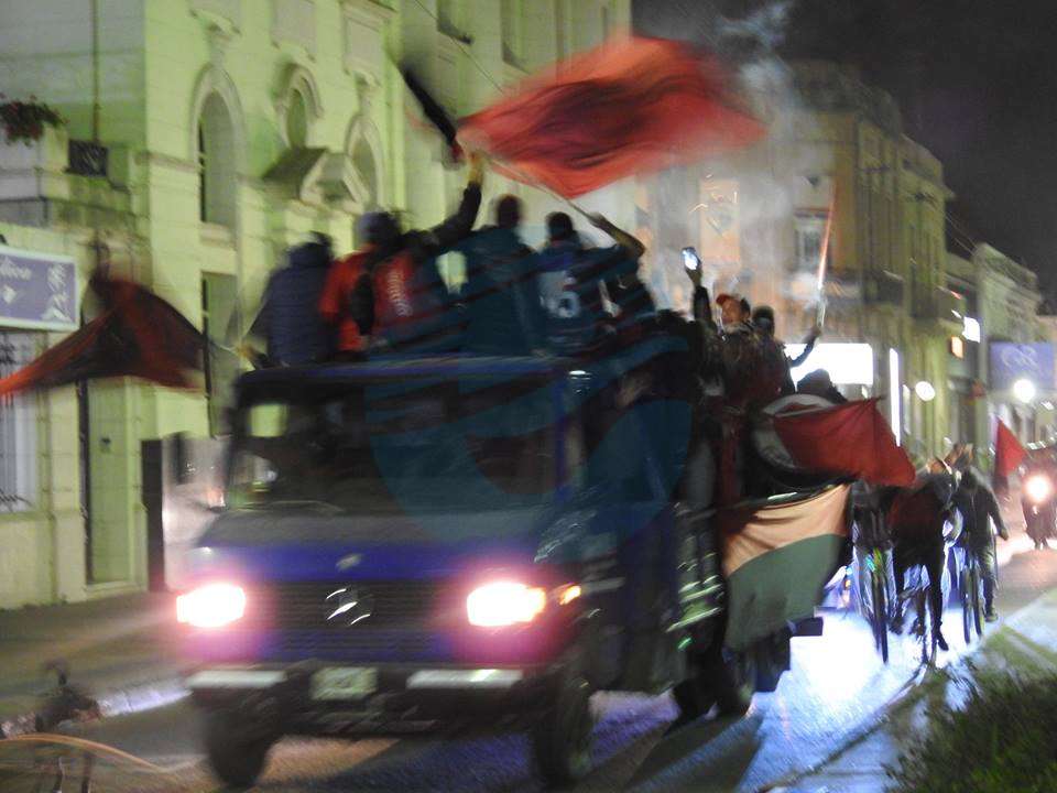 Tal como adelantó su actual presidente, Roberto “Tito” Simonutti, en la noche del martes se encontraron en la sede social de calle Moreno y allí encararon una caravana multitudinaria hasta Plaza San Martín para recorrerla y llenarla de cánticos festivos.