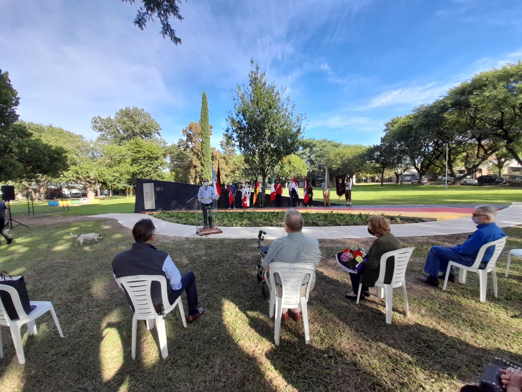 Estamos hoy reunidos en esta significativa plaza, por el nombre que lleva y por ser la misma un justo homenaje a los “inmigrantes alemanes” y que hacemos su puesta en valor en este especial año.