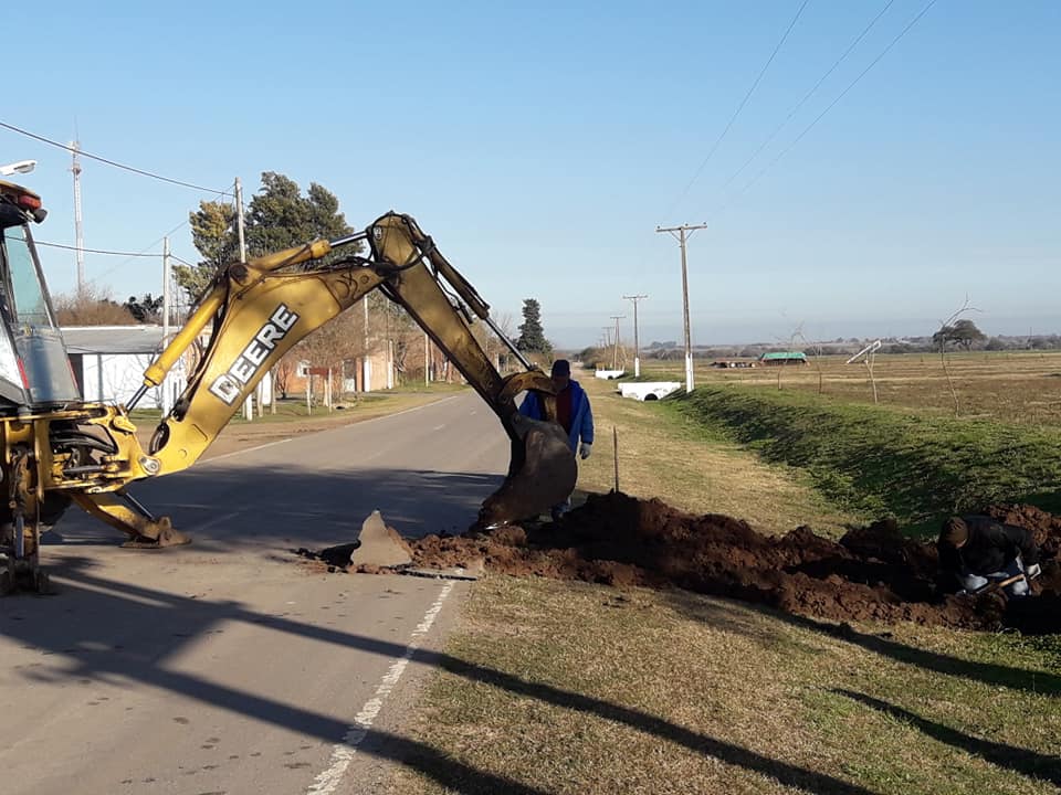 Aprovechando el buen tiempo y después de días trabajando en nivelamiento de lo que será la Avda. Rafaela se trabajó en desagües y se colocó los moldes para dejar demarcado donde va la construcción del pavimento.