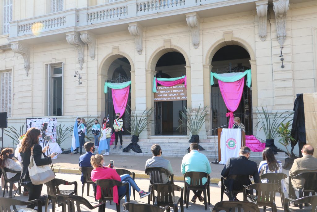 Teniendo en cuenta lo antes dicho estoy convencida que no es casual, sino muy causal, que podamos celebrar y reflexionar sobre estos valores hoy aquí, en el 125 aniversario de la Escuela Normal Domingo Faustino Sarmiento de nuestra ciudad, establecimiento que forjó a lo largo de su historia a ciento de miles de nuestros vecinos en el marco de esos valores de libertad, solidaridad, compromiso y responsabilidad.