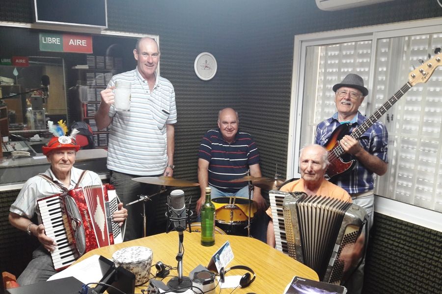 En el programa 1231 de «Brisas Suizas y Alemanas» recibimos a los músicos Hugo Augusto Invilkelried (Acordeón), Hugo Omar Patocchi (Acordeón), Hugo Luis Silva (Bajo y Guitarra) y Hugo Albino Franzen (Batería) quienes formaron en el Cuarteto Hugo’s para celebrar el cumpleaños Nº 83 de Hugo Augusto.