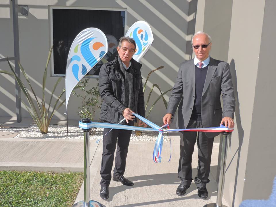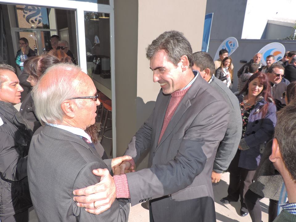 El presidente comunal Javier Enrico acompañado por el vicepresidente Damián Franzen participó de la inauguración de las nuevas oficinas administrativas de Milkaut S.A. ubicadas en la esquina de calles San Martín y Alberdi.
