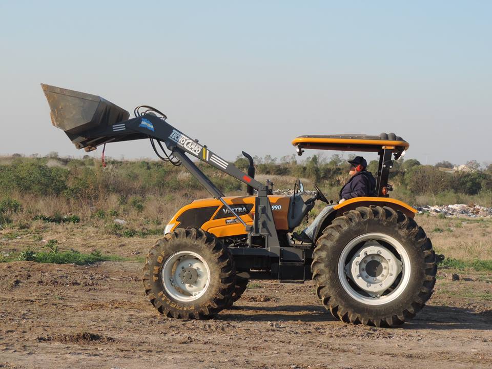 Incorporamos una pala frontal al Tractor Valtra adquirido mediante el programa provincial «Equipar», para mejorar las tareas que se realizan en el relleno sanitario de F.I.M.A.